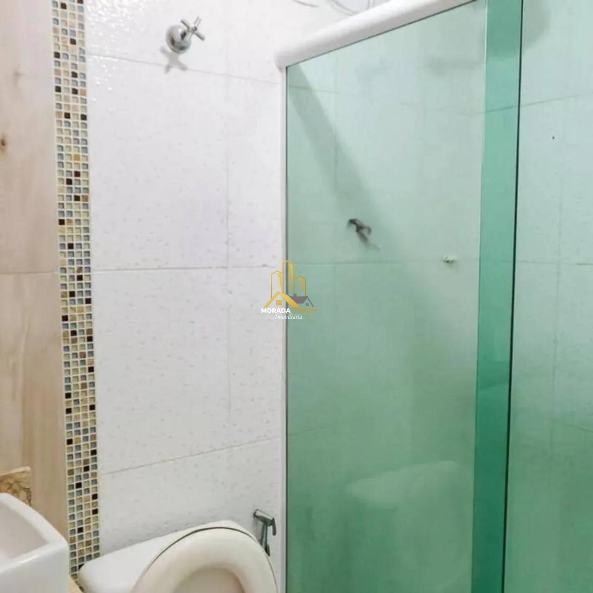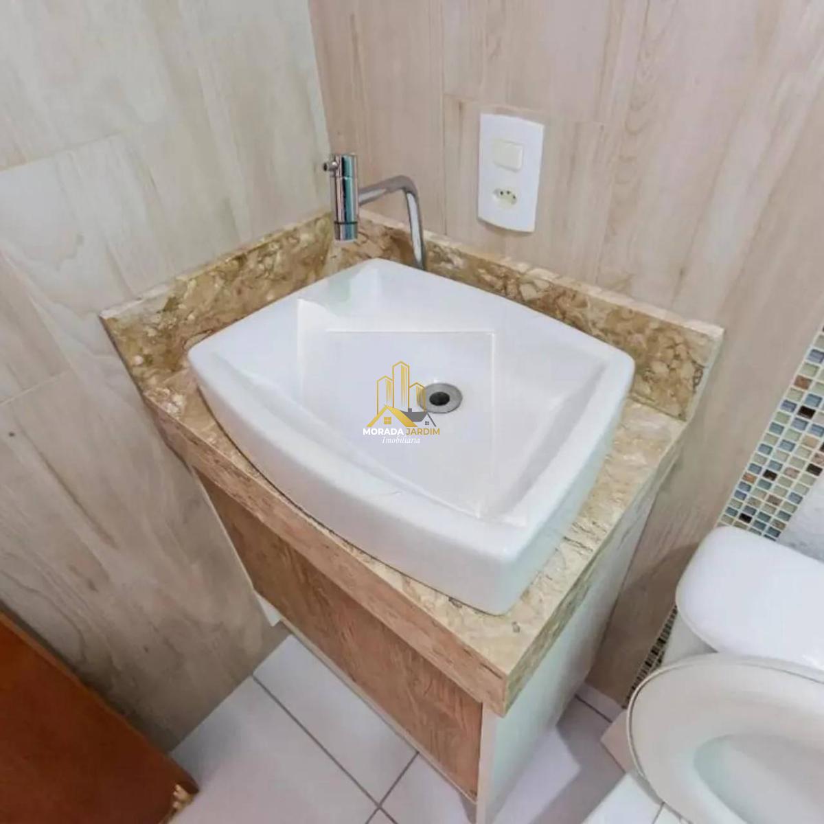 Teto da sala com gesso e luz embutida. Banheiros com gabinete, pias de sobrepor e boxes de vidro.