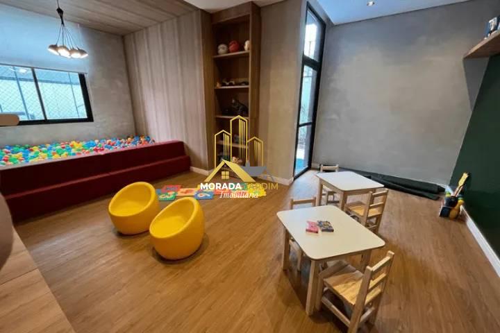 Apartamento de alto padrão à venda Vila Bastos, em Santo André. Imóvel no 4º andar com 87m², dois quartos (uma suíte), dois banheiros, sala ampliada, varanda gourmet e técnica para instalação de ar-condicionado. A unidade está no contrapiso e recebe luz natural todo o dia. São duas vagas na garagem (36 e 37 no 2° subsolo, mas com acesso direto da rua). Gás, energia elétrica e água individualizados.