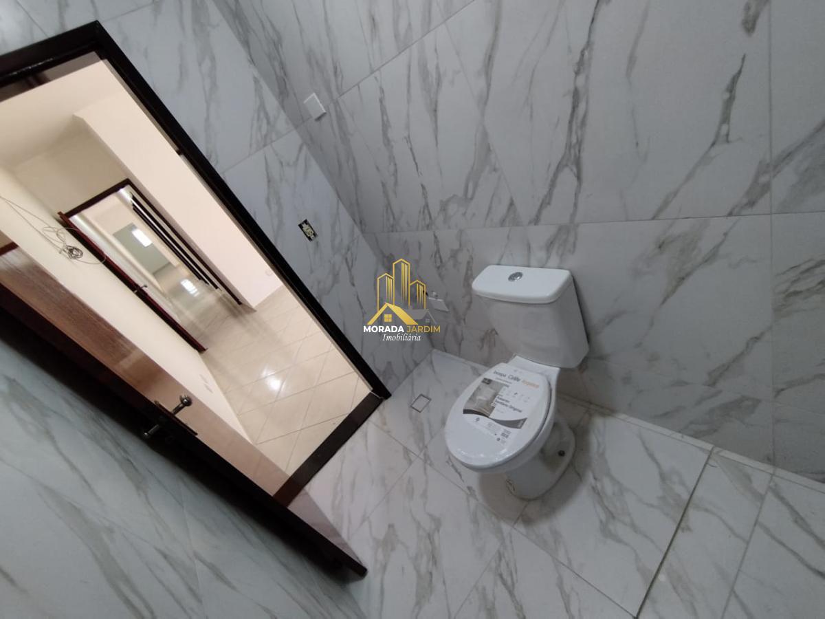 O imóvel tem 02 quartos, possui 01 banheiro, 01 sala e 02 vagas de garagem.