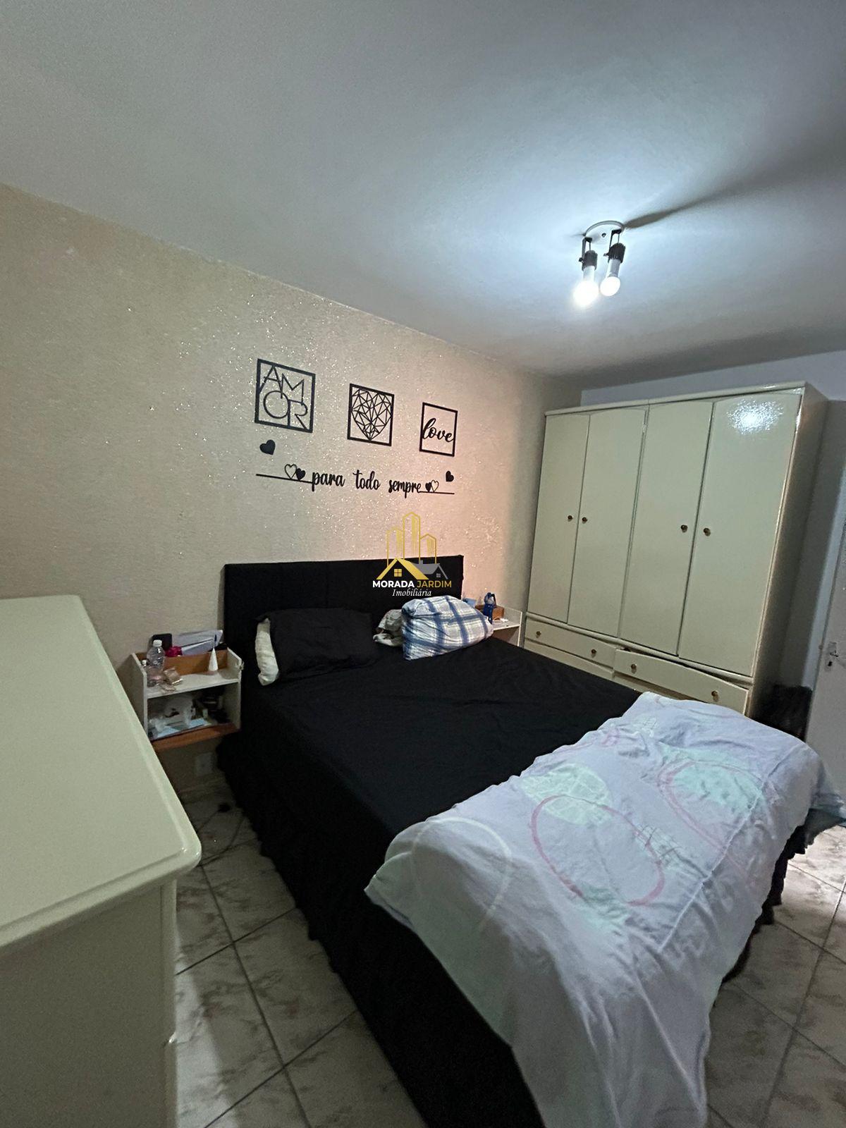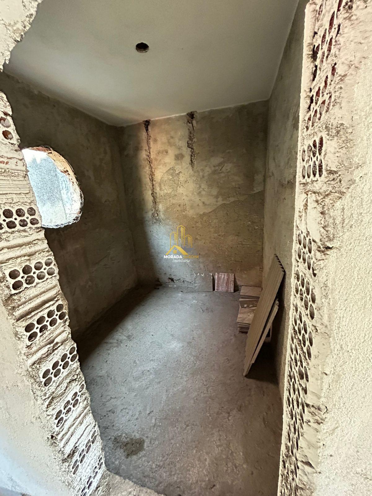 Com 3 quartos, sala e cozinha.